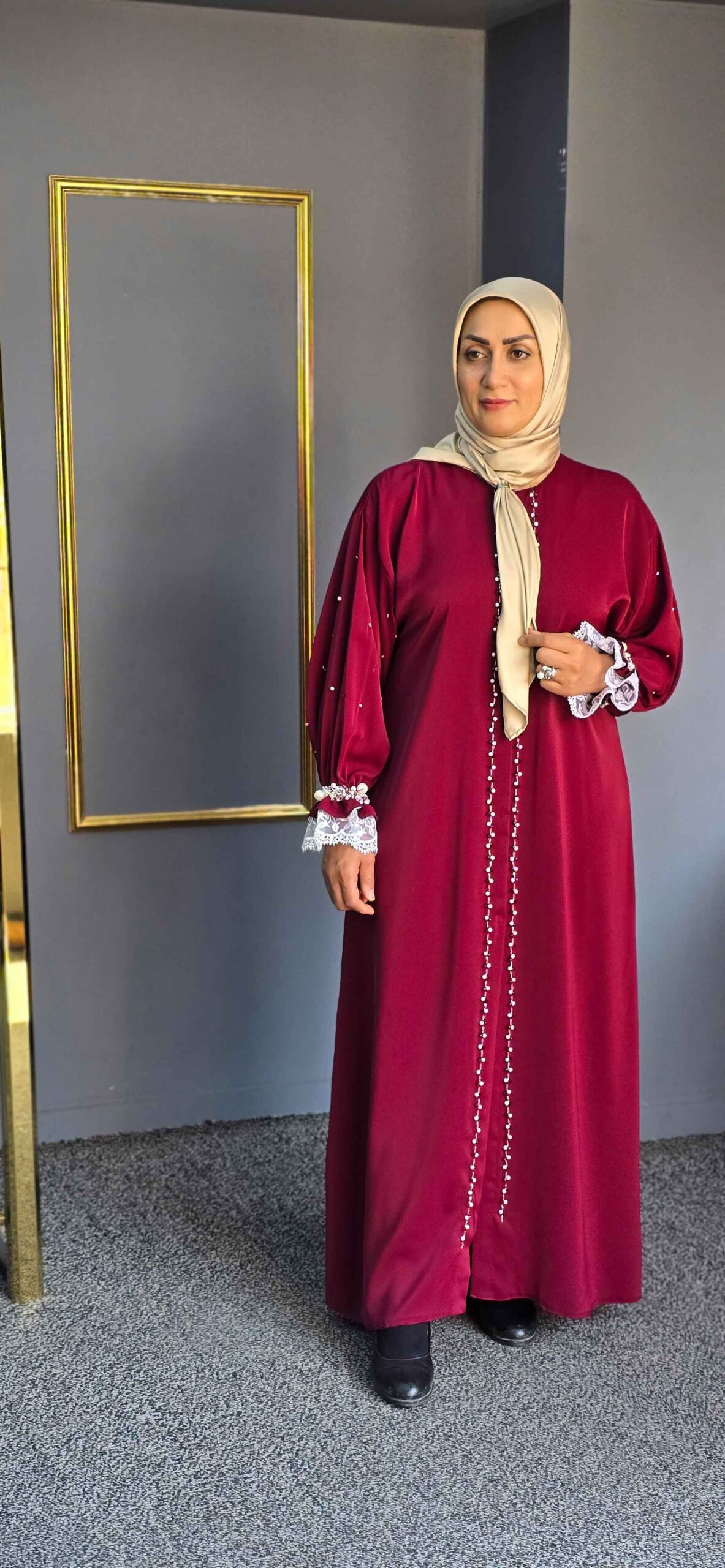 عبای زنانه زرشکی مروارید، انتخابی ایدهآل برای شماست.